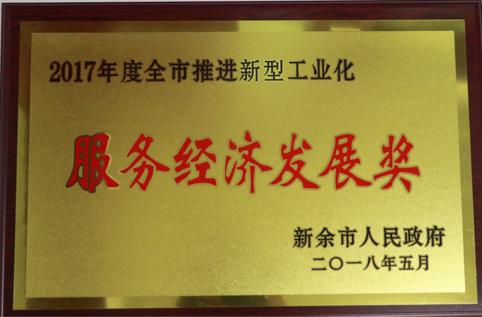 我公司連續(xù)2年榮獲新余市服務(wù)經(jīng)濟(jì)發(fā)展獎